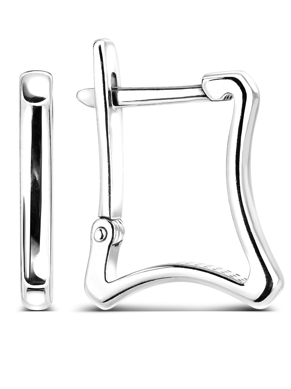 Серебряные серьги в виде изогнутого прямоугольника. Серьги без камней покрыты родием (металл пратиновой группы, толщина слоя родия 10 микрон надежно защищает серебро от потемнения), что делает их неотличимыми от украшений из белого золота. Классический английский замок максимально комфортный и защищает Ваши оригинальные серьги от потери. Серьги геометрия выгодно подчеркнет вашу индивидуальность, может быть вечерним аксессуаром или украшением на каждый день. Рабочая зона штифта - 7 мм. Размер серьги - 15 на 2 мм, занижение штифта - 1 мм. Средний вес - 2,8 гр. Оригинальная, приятная на ощупь, подарочная упаковка станет хорошим дополнением к качественным необычным серьгам. Ювелирное украшение в коробочке - идеальный подарок для себя, подруги или любимой.