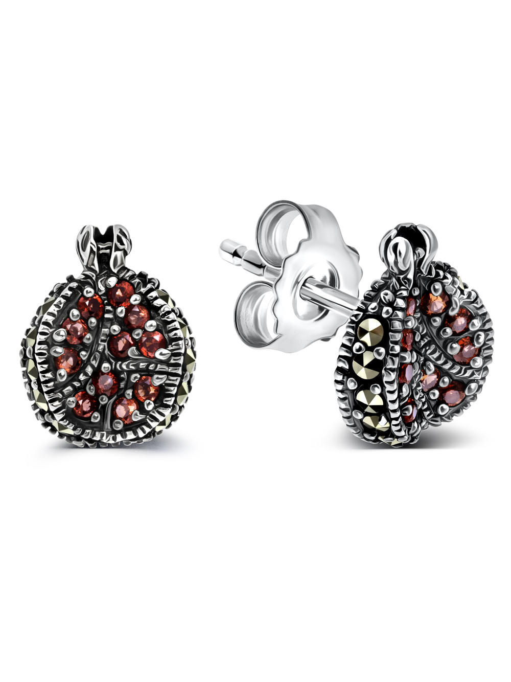 Серебряные серьги ALEXANDRE VASSILIEV с гранатом и марказитами Swarovski