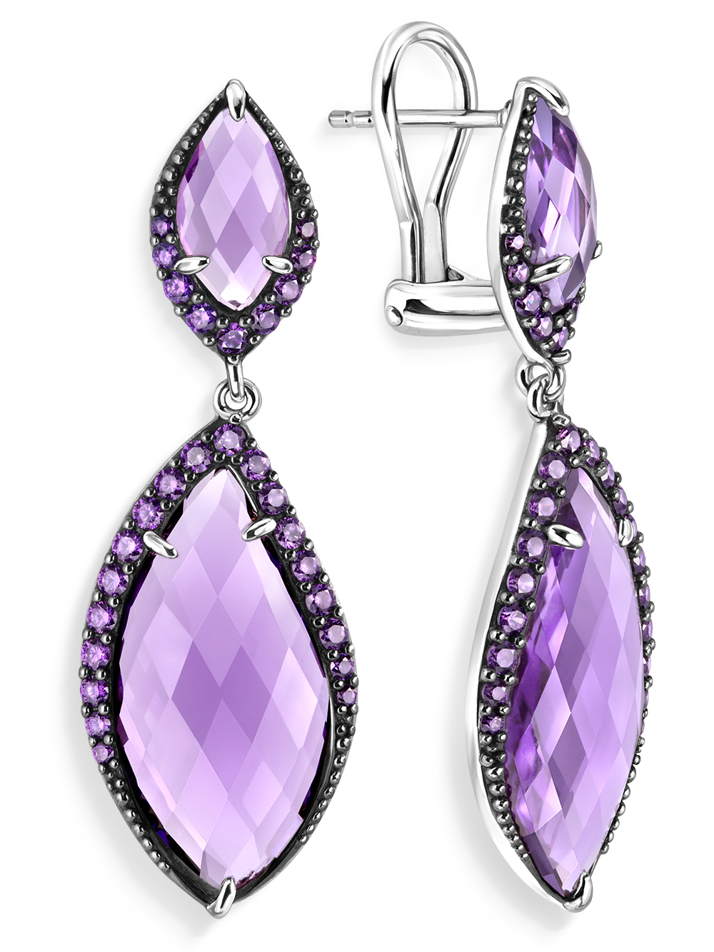 Серебряные серьги ALEXANDRE VASSILIEV с кварцем и фианитами Swarovski цвета "Аметист"