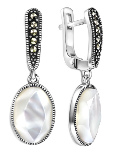 Серебряные серьги ALEXANDRE VASSILIEV с перламутром и марказитами Swarovski