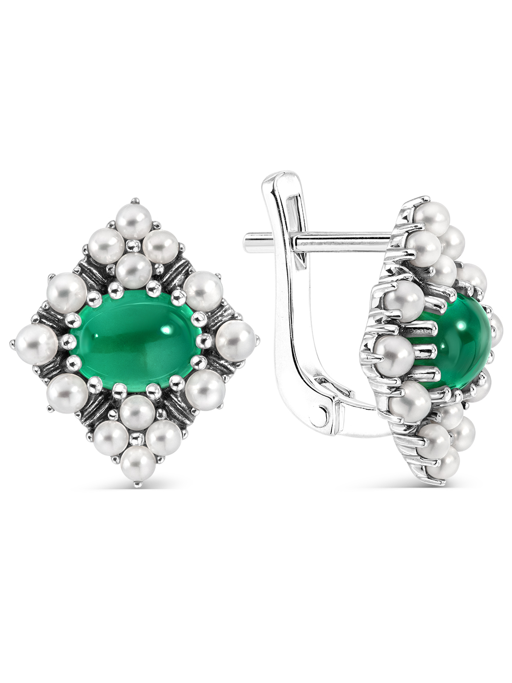 Серебряные серьги ALEXANDRE VASSILIEV с зеленым агатом, микрожемчугом