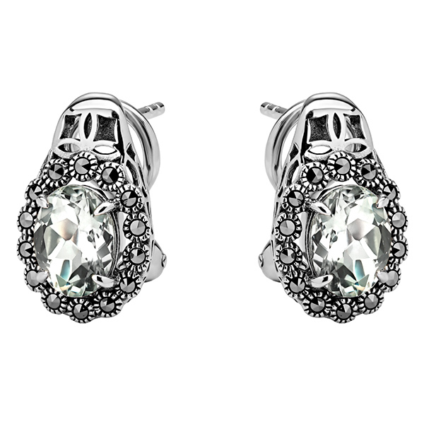 Серебряные серьги ALEXANDRE VASSILIEV с зеленым аметистом и марказитами Swarovski
