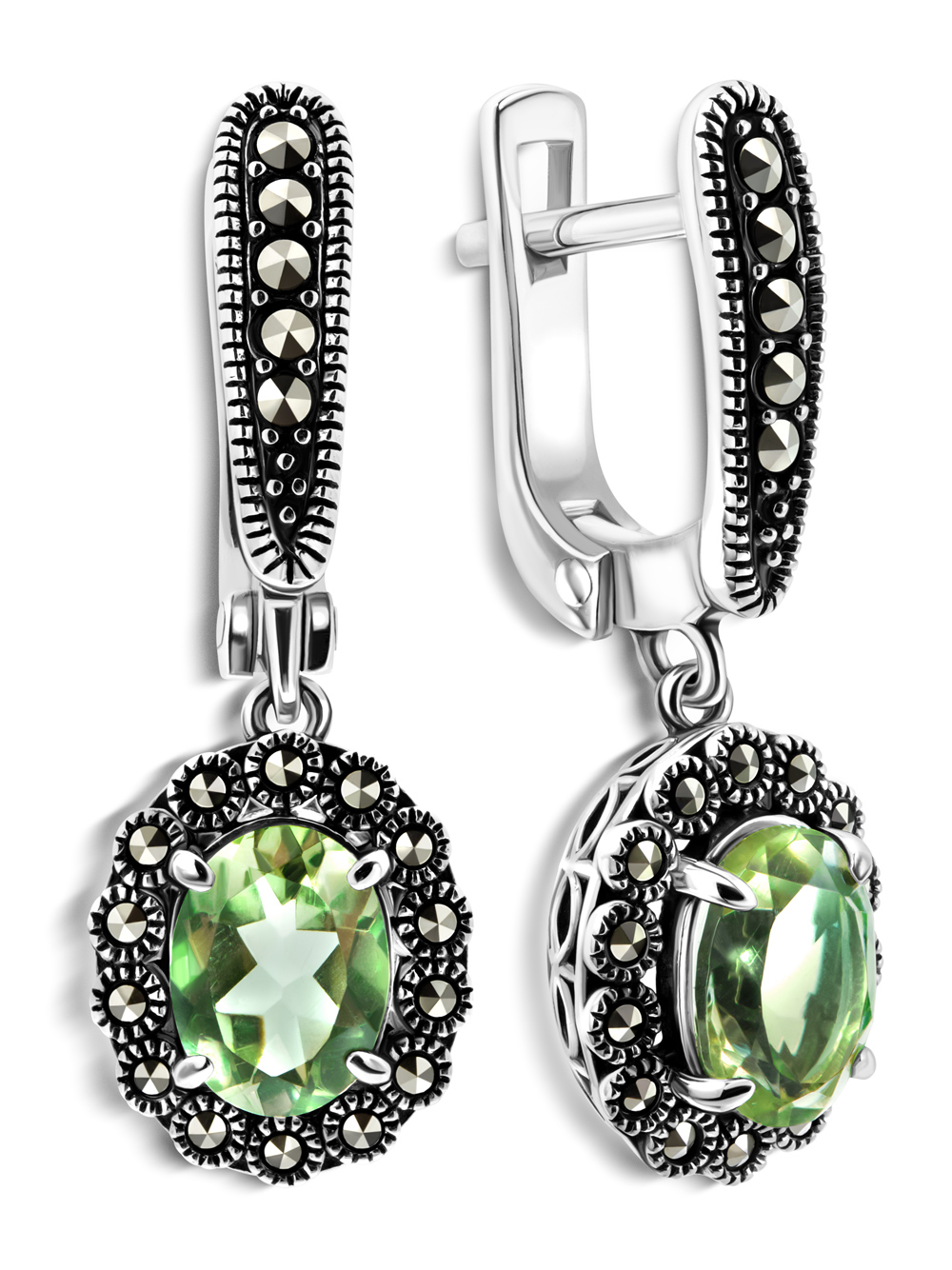 Серебряные серьги ALEXANDRE VASSILIEV с зеленым аметистом и марказитами Swarovski