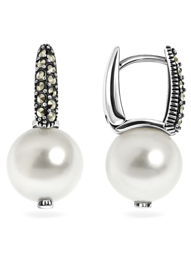 Серебряные серьги ALEXANDRE VASSILIEV с жемчугом, марказитами Swarovski