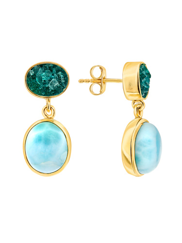 Серебряные серьги EILAT с ларимаром и жадеитом. позолотой