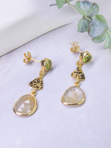 Серебряные серьги EILAT с зеленым ониксом и позолотой
