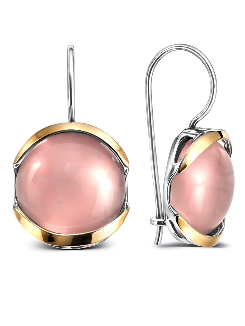 Серебряные серьги EILAT с золотом и розовым кварцем