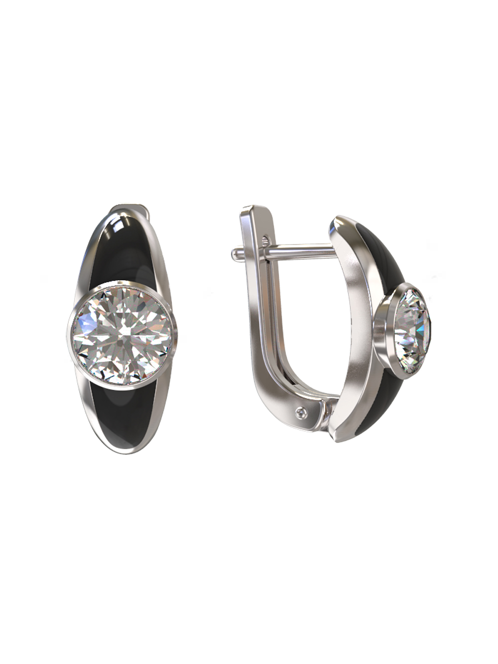 Серебряные серьги с фианитом и эмалью