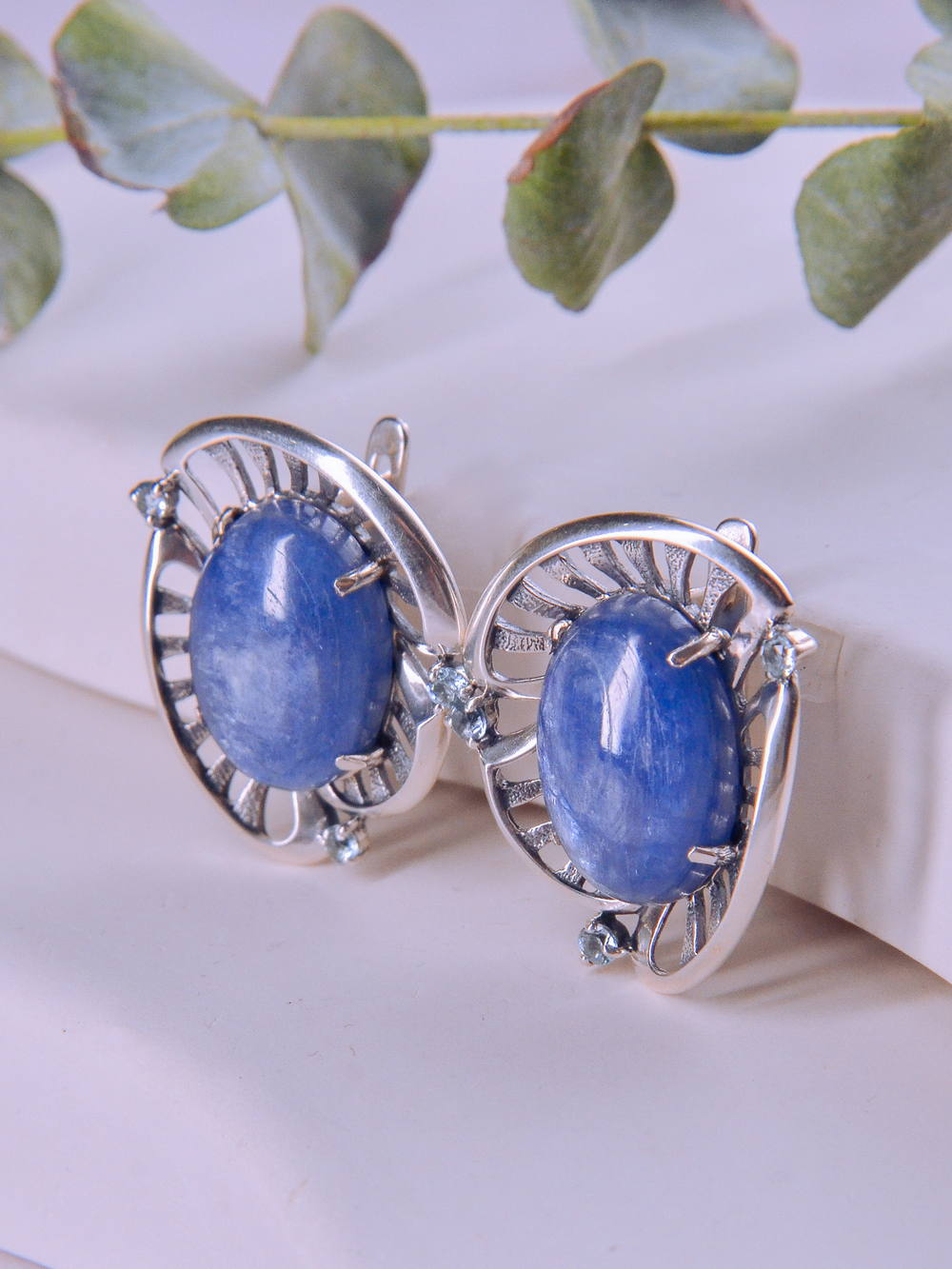 Серебряные серьги с кианитом