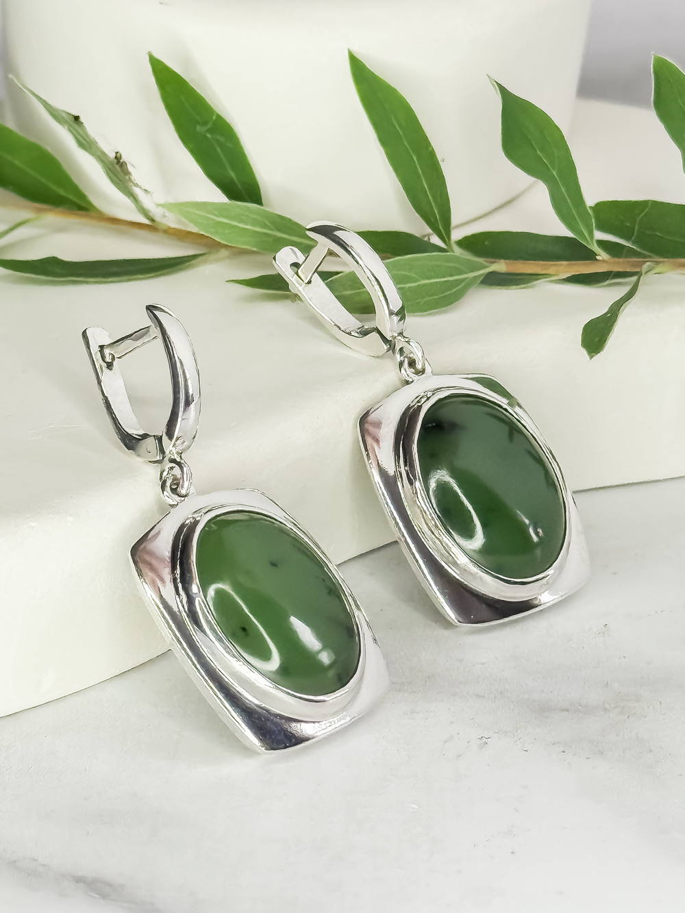 Серебряные серьги с нефритом