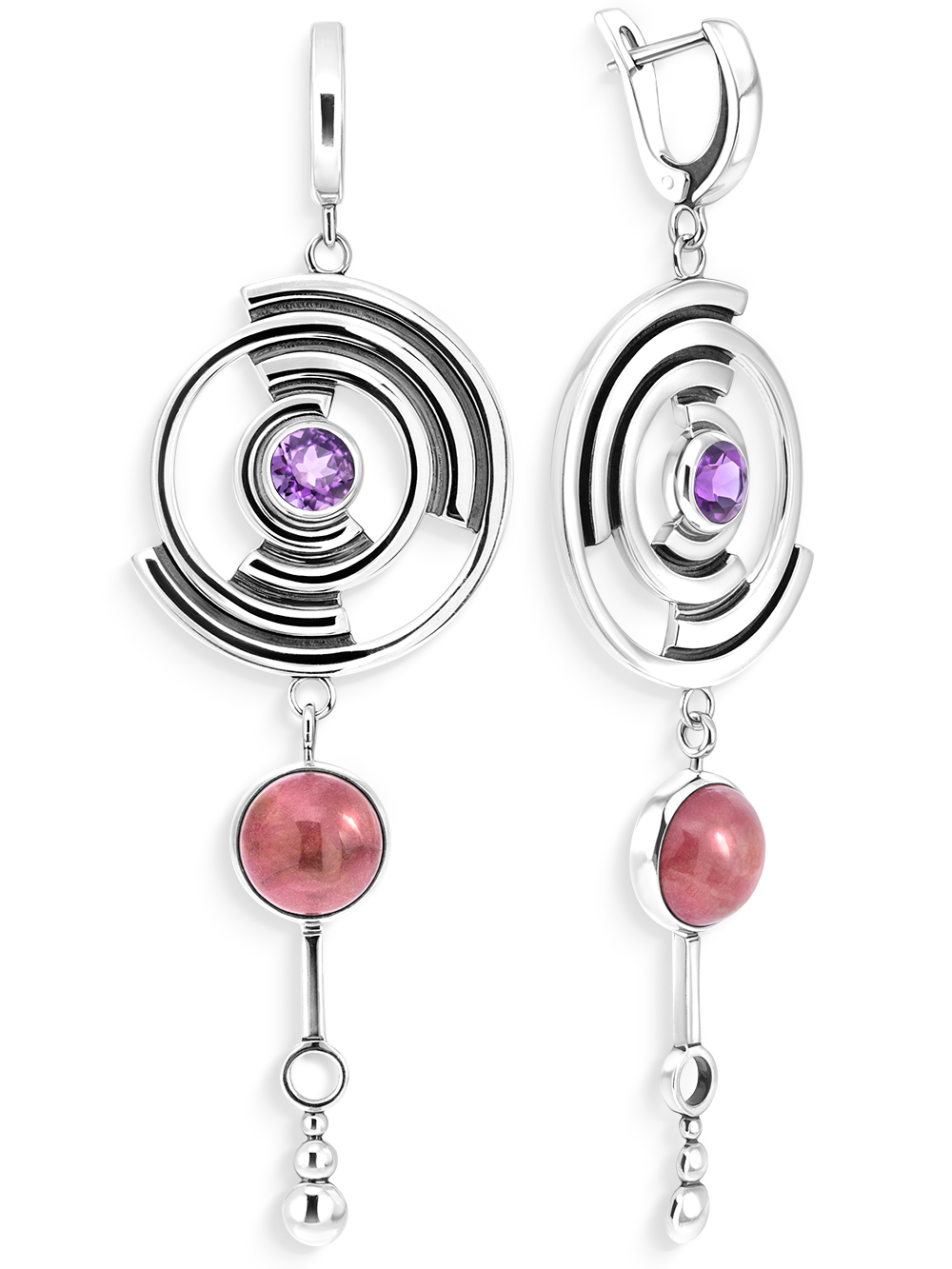 Серебряные серьги с родонитом