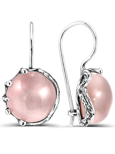 Серебряные серьги в винтажном (этническом) стиле с крупным натуральным розовым кварцем. Необычные круглые серьги серебро 925 выгодно подчеркнут вашу индивидуальность, могут быть вечерним аксессуаром или серьгами на каждый день.