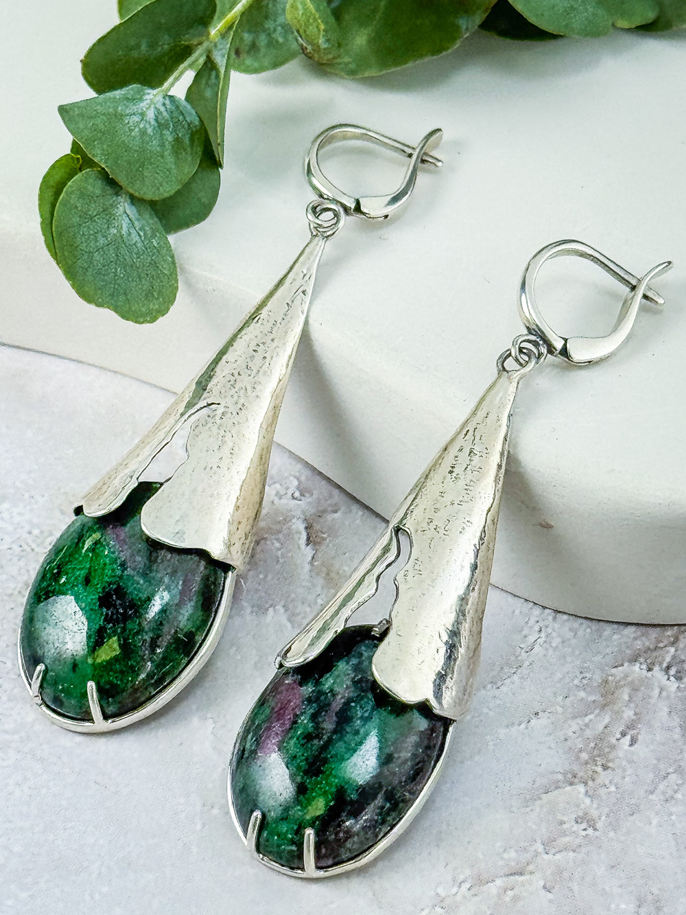 серебряные серьги с рубином в циозите