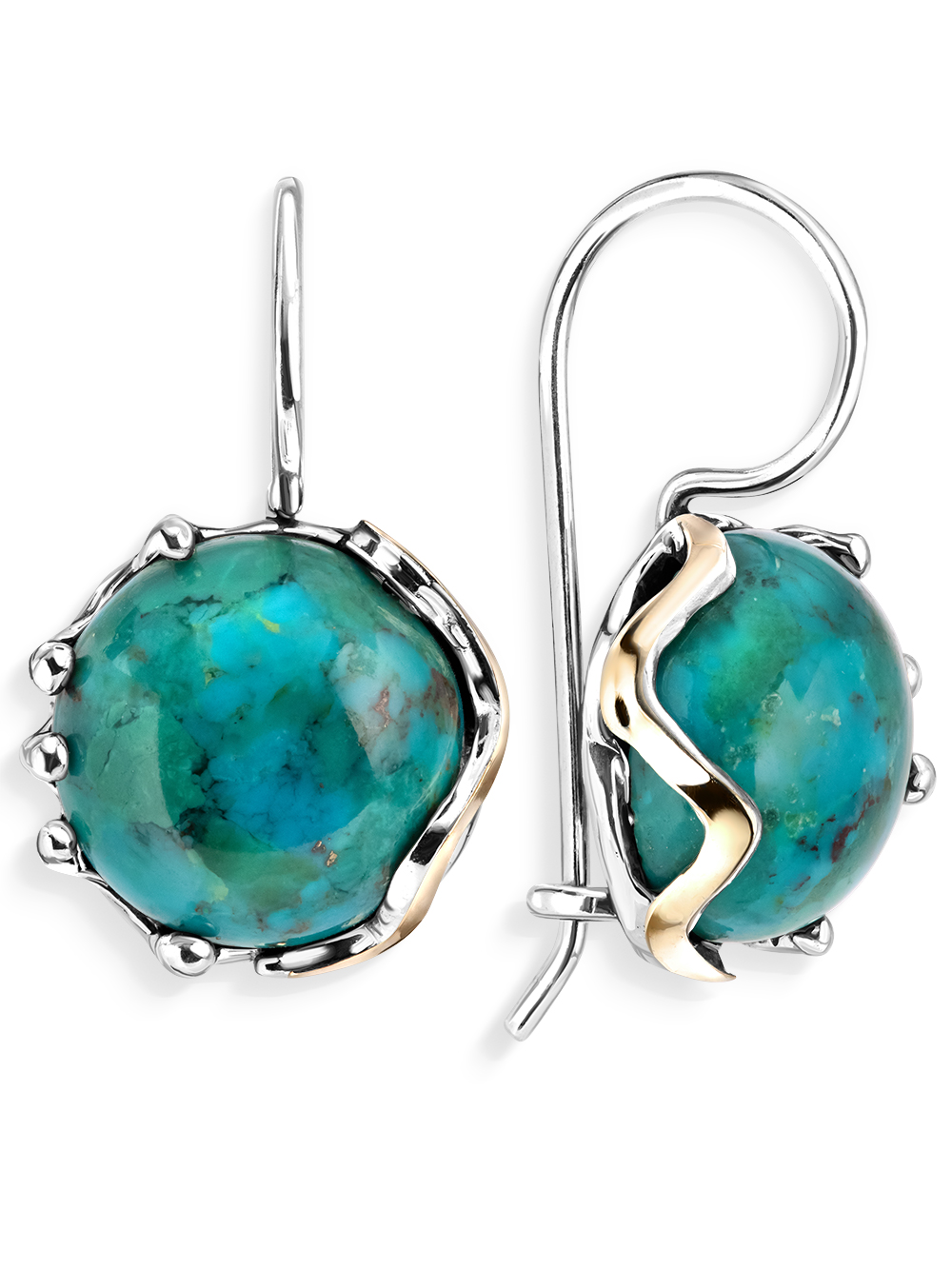 Серебряные серьги Yaffo с бирюзой и золотом