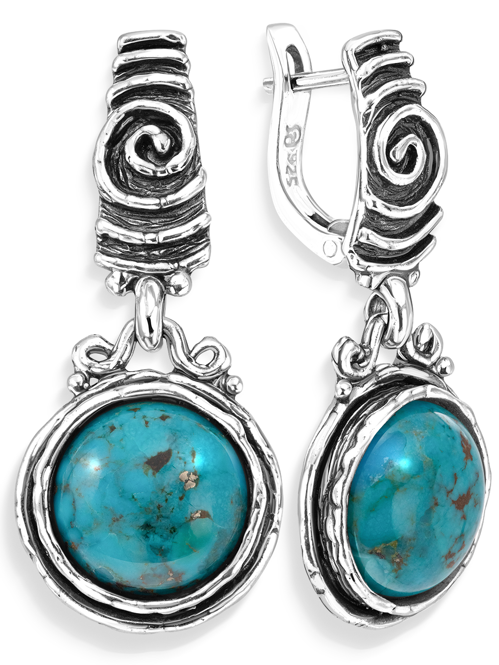 Красивые крупные серебряные серьги в винтажном стиле с натуральной бирюзой. Серебро 925, ручная работа, производство Израиль. Необычные большие объемные серьги с натуральным зелёным камнем выгодно подчеркнут вашу индивидуальность, могут быть вечерние, праздничные, акцентные.
