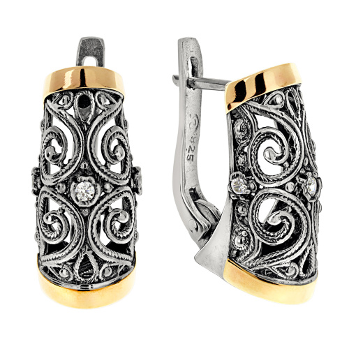 Серебряные серьги Yaffo с фианитом и золотом