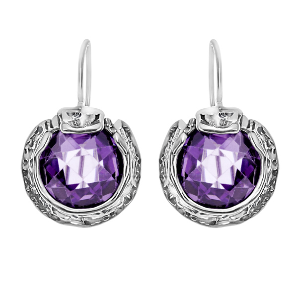 Серебряные серьги Yaffo с фианитом цвета "Аметист"