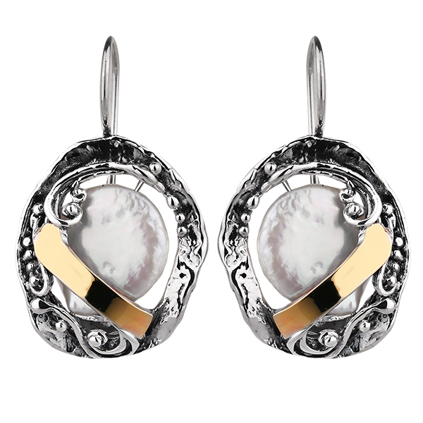 Серебряные серьги Yaffo с жемчугом и золотом