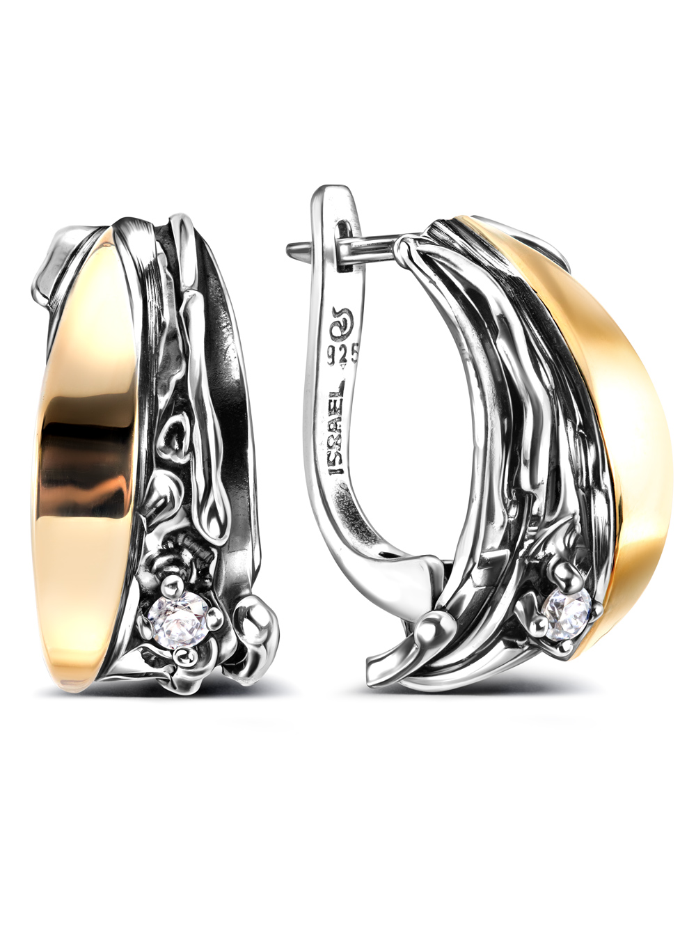 Серебряные серьги Yaffo с золотом и фианитами