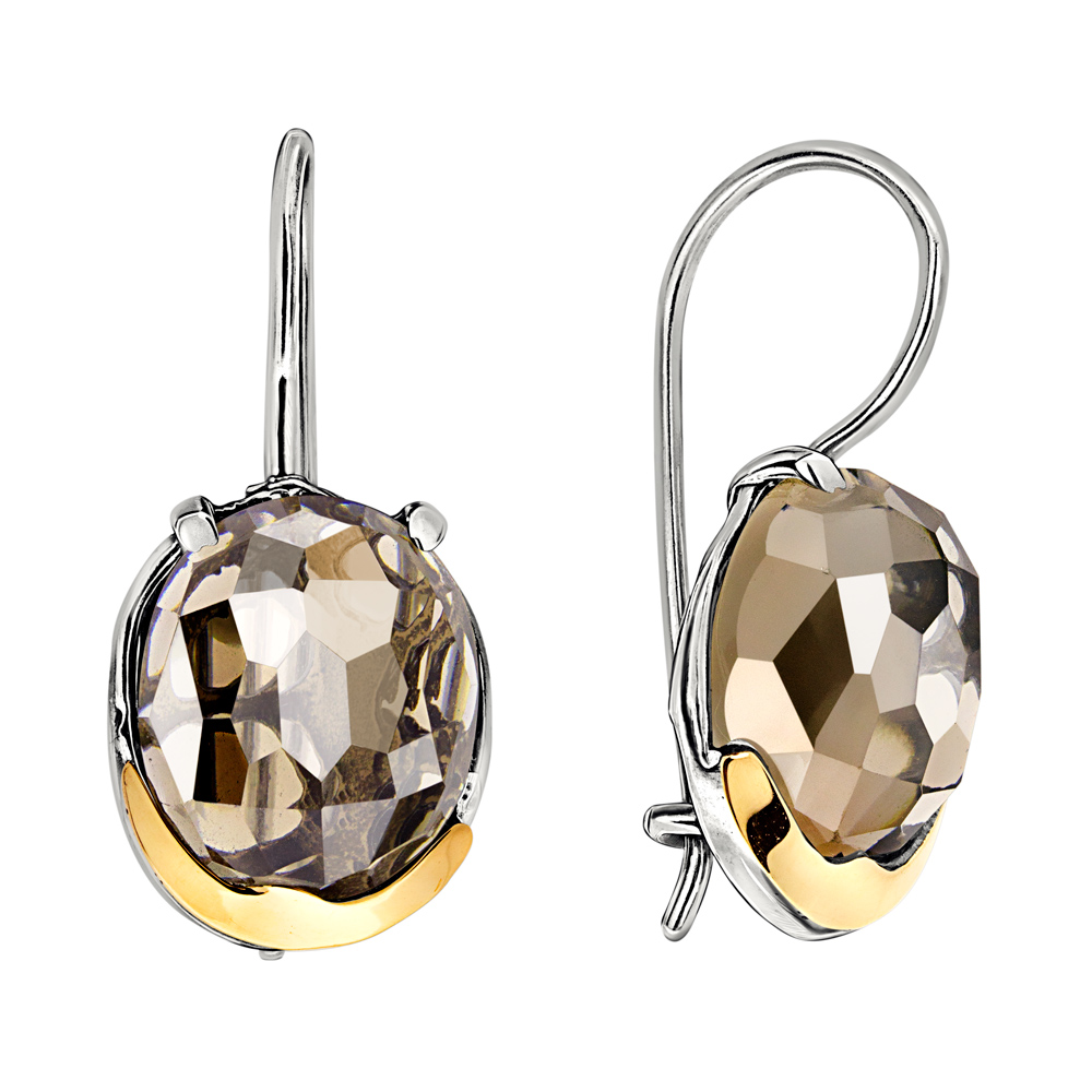Серебряные серьги Yaffo с золотом и раух-топазом