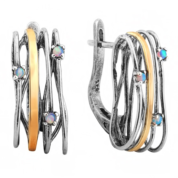 Серебряные серьги Yaffo с золотом и синт. опалом