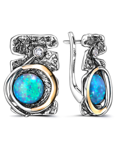 Серебряные серьги Yaffo с золотом, синт. опалом и фианитами