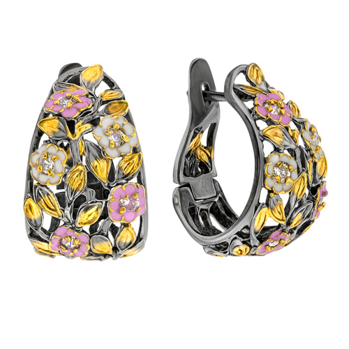 Серебряные серьги Жар-Птица с фианитом