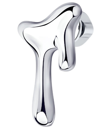 Стильная одиночная серебряная серьга без вставок в форме стекающей капли.